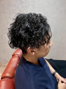 スタイルは強めな癖毛を活かしたパーマ風スタイリング💡